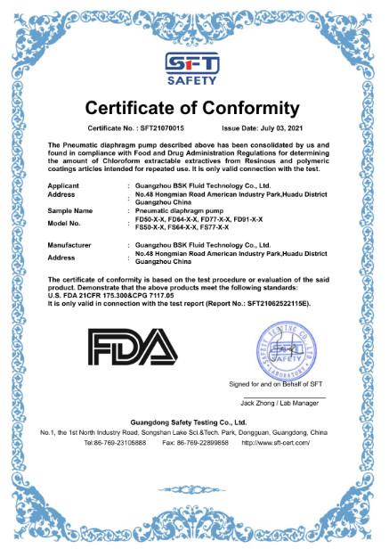 All of the Pneumatic Diaphragm Pump are manufactured in accordance with ISO CEstandards. Our product were tested by our government every year and got many rewards from our association and government. Our Pneumatic Diaphragm Pump have past many testes by third party in China or other countries.